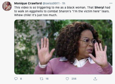 “But right now, I’m talking to a woman who I believe is my friend. I don’t want anybody here to watch this [and think] we’re attacking you for being racist., and for that, if I articulated anything…”