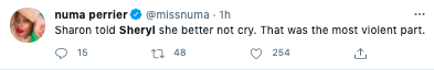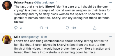Sheryl began trending on Twitter as viewers reacted to the conversation.