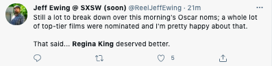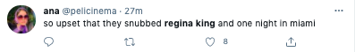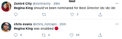 What are your thoughts on Regina King not receiving a nomination for Best Director? Comment and let us know.