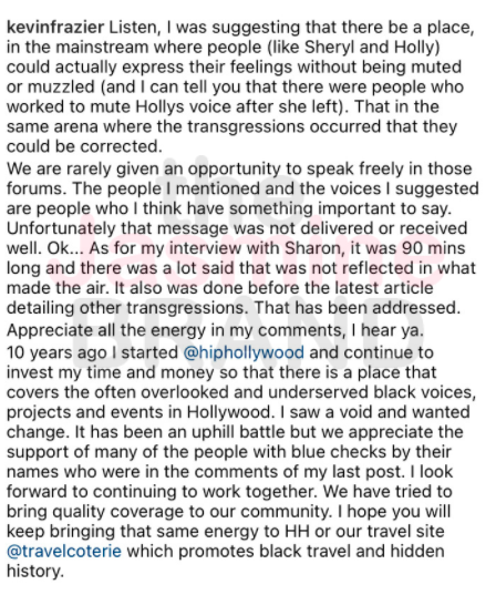 “In response to @hollyrpeete Holly Robinson Peete’s accusation of me getting her fired from @thetalkcbs and saying she was “too ghetto” to be on The Talk. I never once uttered those words and I am sharing an e mail sent to me from Holly one month after she was let go by CBS. As I have stated before, I have never had the ability/authority to get anyone fired from @thetalkcbs and Ms. Peete’s email speaks for itself.”