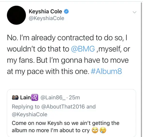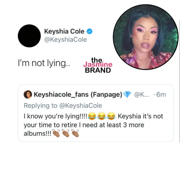 Many fans were shocked by Keyshia Cole’s announcement and asked if she was just joking. However, Keyshia continued to tweet and said that she’s not lying.