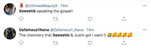Justin Combs and Justin LaBoy both seemed shocked by the answer that Saweetie gave them. Saweetie has been in a relationship with Migos rap member Quavo since 2018. However, rumors have recently surfaced that the pair are no longer together because they have unfollowed each other on Instagram.