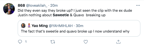 The ‘Tap In’ rapper was trending on Twitter following her Respectfully Justin interview. In addition to her interview, many fans have been talking about her possible breakup from her boyfriend as well.