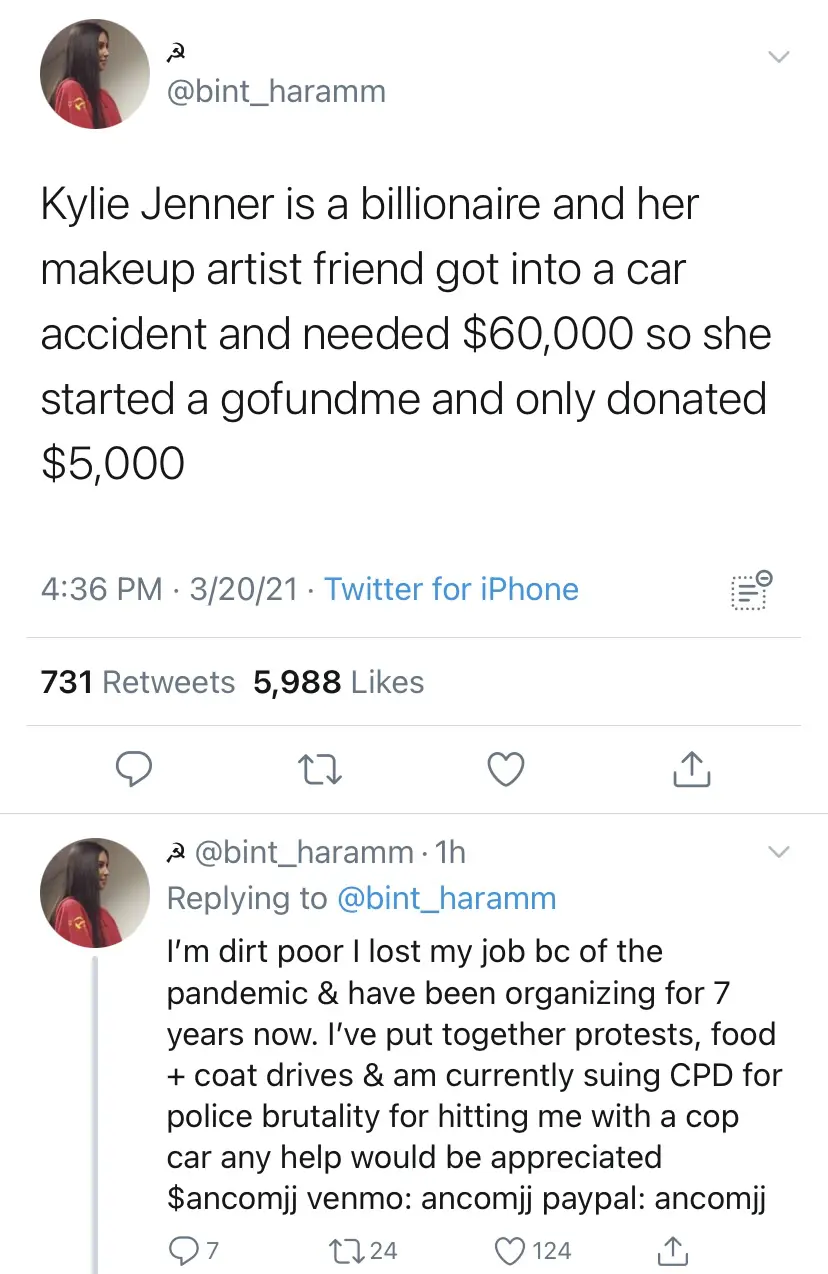 Kylie Jenner is facing backlash after asking some of her social media followers to donate to a crowdfunder to pay for her make up artist’s emergency surgery. The reality star and billionaire also noted that she donated $5,000 herself.
