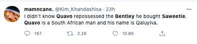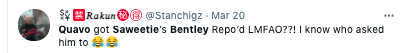 Quavo sent the repo man to get that Bentley from Saweetie ? pic.twitter.com/mr8DNJn92t