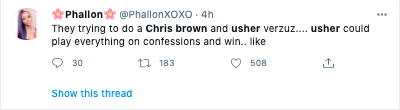 Chris Brown? Better than Usher? I'll give Chris the dancing because he IS VERY talented. But better music than Usher????? pic.twitter.com/nZfY8o9Wye