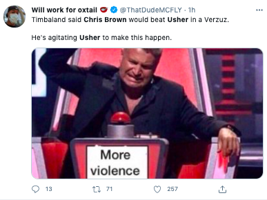 Meanwhile, Usher trended on Twitter after the hosts debated on who would win if he battled Chris Brown.