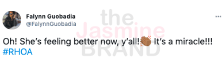 “Oh! She’s feeling better now y’all! It’s a miracle!!!”