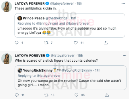 But they won’t be facing off at the reunion special. The ladies taped the reunion Thursday, March 26th, and before going in, LaToya Ali said she wasn’t feeling well.
