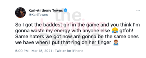 As previously reported, Jordyn Woods recently had to shut down rumors that her boyfriend was cheating on her. Karl-Anthony Towns denied the cheating allegations that surfaced against him as well. The Minnesota Timberwolves player then shared that he plans on putting a ring on Jordyn’s finger.