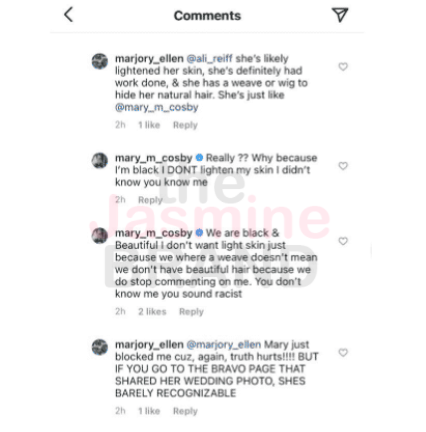 “she’s likely lightened her sin, she’s definitely had work done, & she has a weave or wig to hide her natural hair. She’s just like [Mary Cosby].”