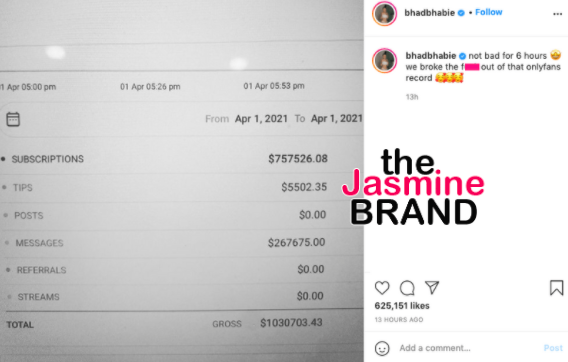 Bhad Bhabie Made Over $1 Million In 6 Hours On OnlyFans, Claims It’s A New Record
