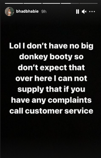 “Lol I don’t have no big donkey booty so don’t expect that over here I can not supply that if you have any complaints call customer service”