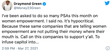 Earlier this week, he said he didn’t want to take part in women empowerment PSAs because “it’s hypocritical.”
