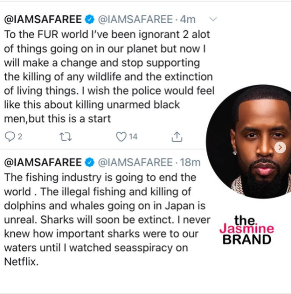 However, earlier today (Friday, April 2nd) Safaree sent off a few tweets and said that he will no longer be wearing fur coats because of documentaries he watched on Netflix. He tweeted,