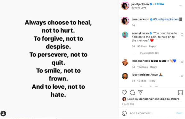 Janet Jackson recently shared a quote about forgiveness that reads,