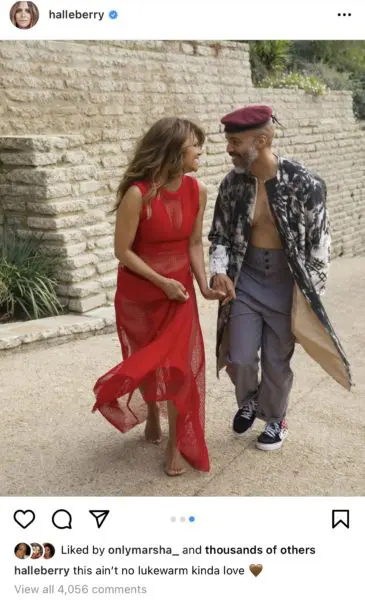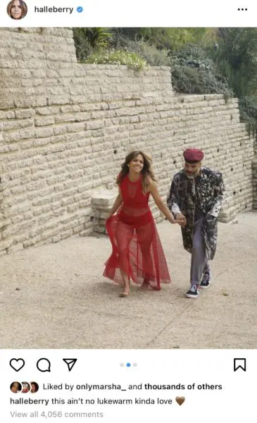 On Friday (Apr.2) Halle Berry took to Instagram and shared a series of pictures with her boyfriend, Grammy-winning singer, Van Hunt. Halle Berry is seen wearing a sexy, sheer red dress posed alongside Hunt who is sporting an abstract printed coat with gray trousers, a maroon beret, and high-top Vans sneakers. Berry captioned the post,