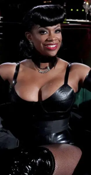 Kandi Burruss is seen dressed in a latex bodysuit, sleeves, collar, and corset. She paired that with a skirt and thigh-high black leather boots. After receiving criticism for her outfit choice, Kandi Burruss took to social media and expressed that she strongly disliked the pictures the network released. She said,