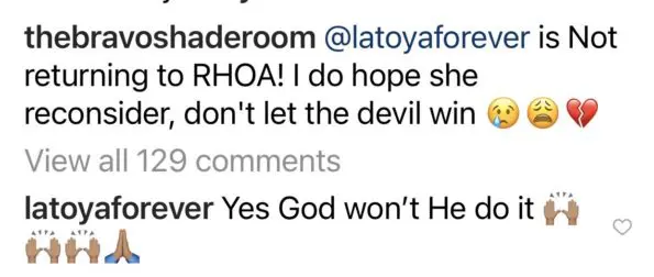 Meanwhile, LaToya, who is a popular YouTuber, may not return for her sophomore season. She alluded to not coming back on @thebravoshaderoom’s IG page.