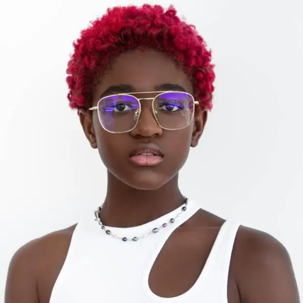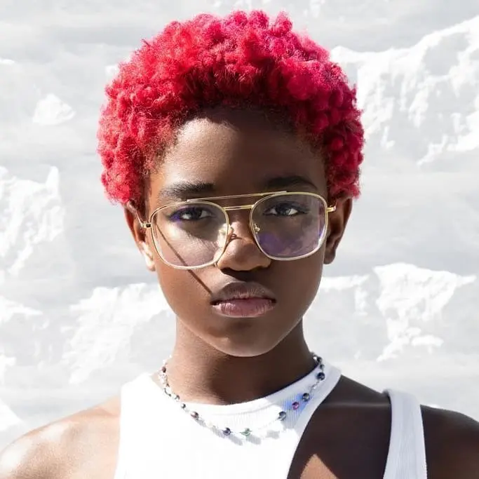 Dwyane Wade’s 13-year-old daughter Zaya Wade has released a new series of stunning photos. Wearing her hair in a short, red natural afro, she wore a sleeveless white cut-out top, pairing the waist-up shoot with a pair of gold frames.
