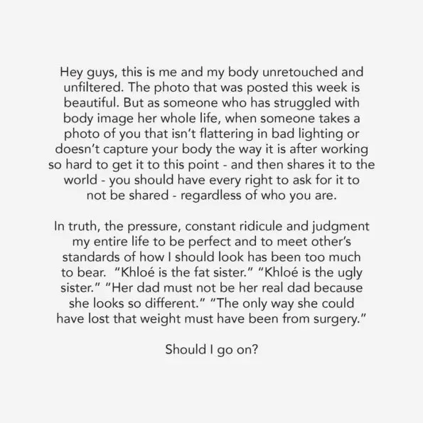 Khloé Kardashian is speaking out, addressing her body image struggles after an unedited photo of her was posted to social media earlier this week without her permission.