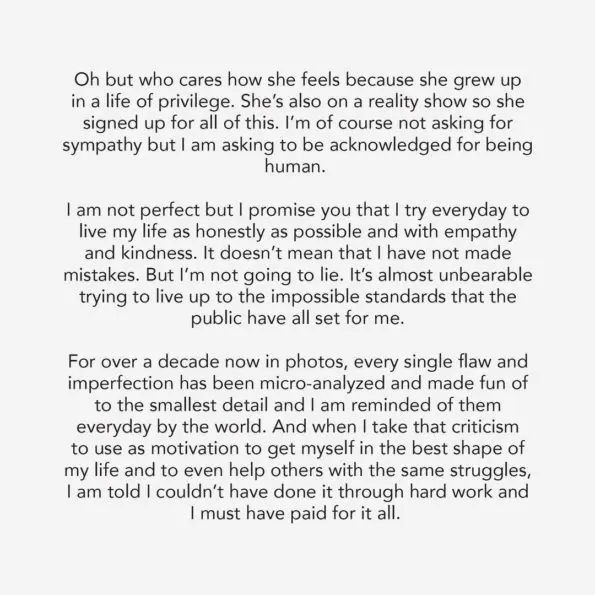 The 36-year-old reality star then listed examples of unkind remarks that have been made about her: