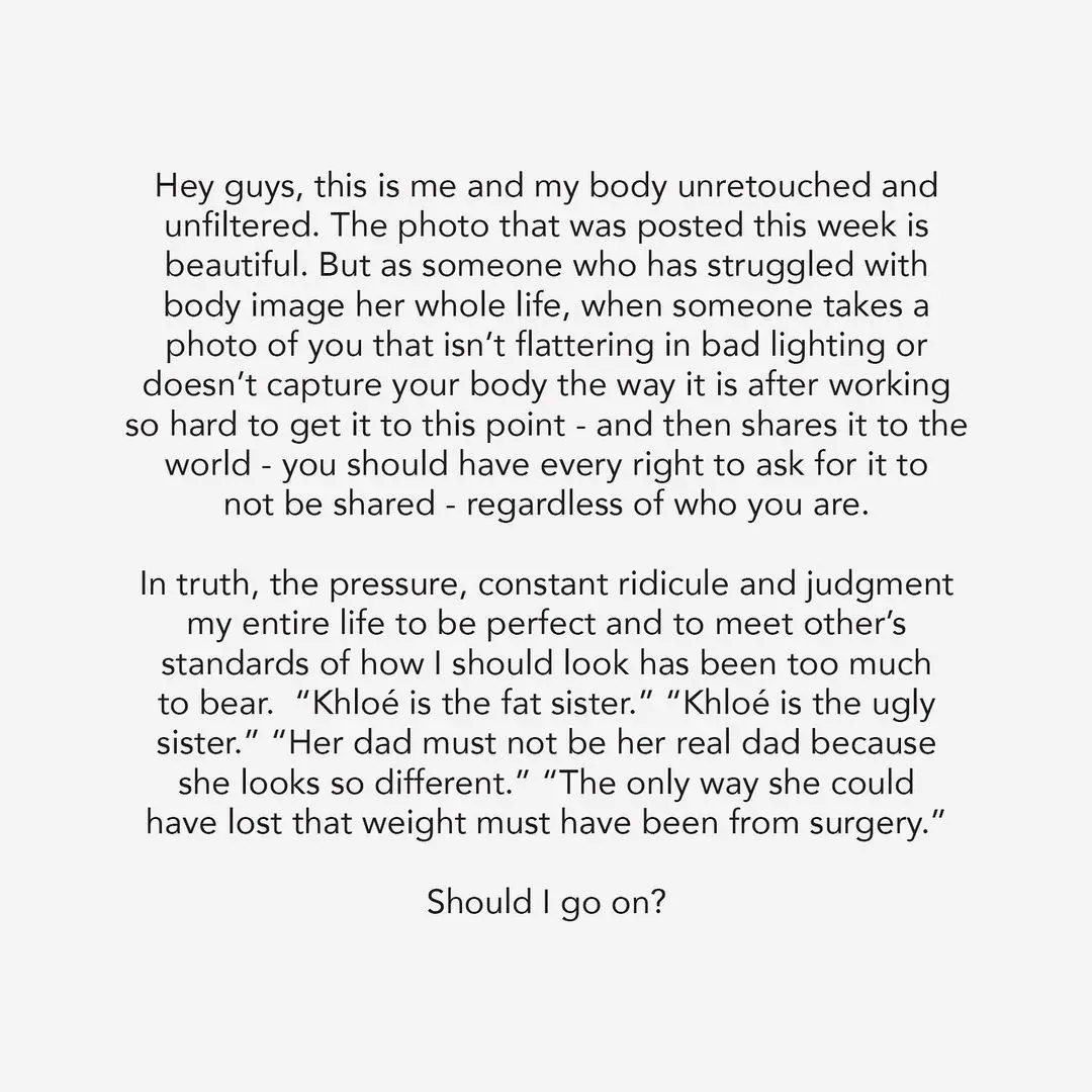 Khloé Kardashian is speaking out, addressing her body image struggles after an unedited photo of her was posted to social media earlier this week without her permission.