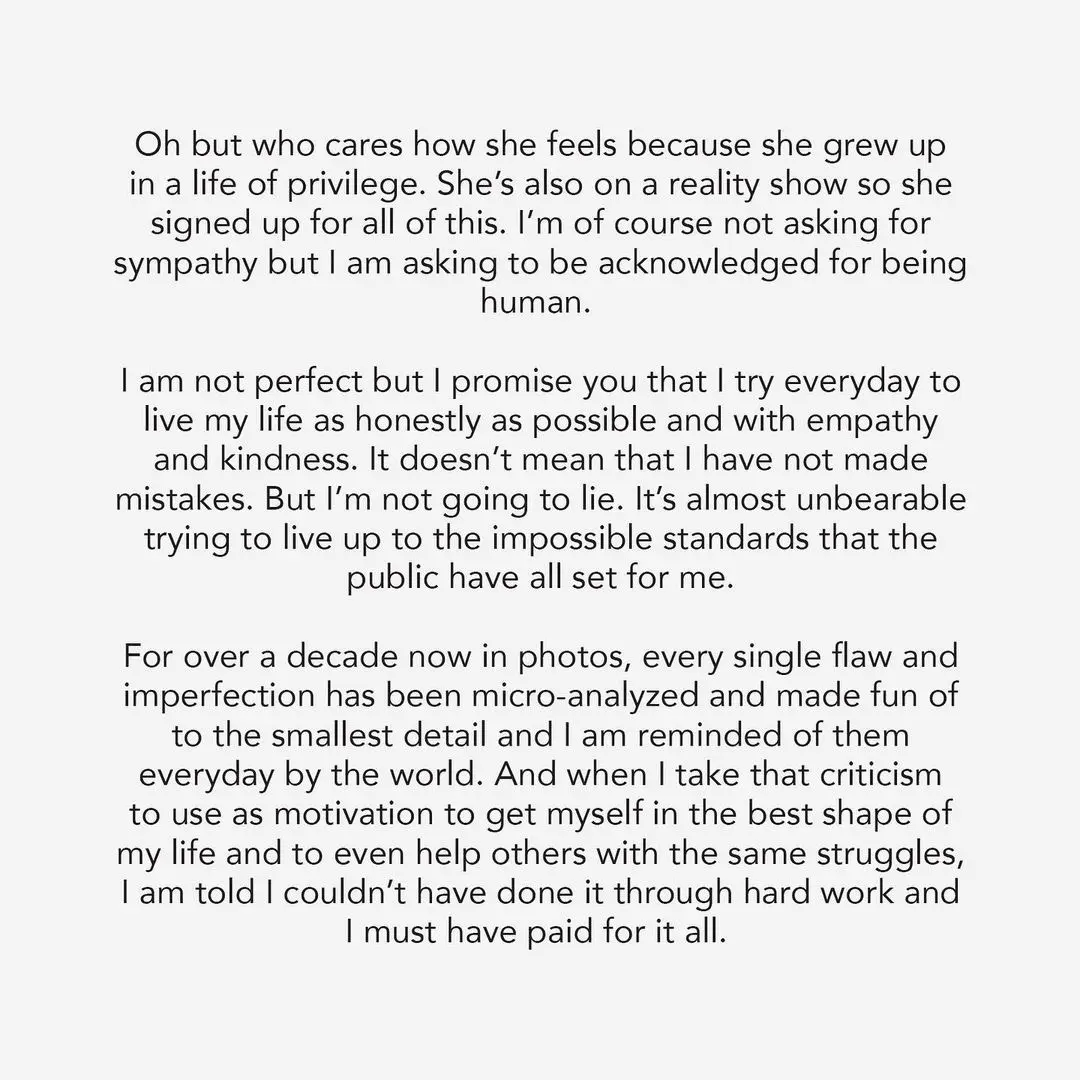 The 36-year-old reality star then listed examples of unkind remarks that have been made about her: