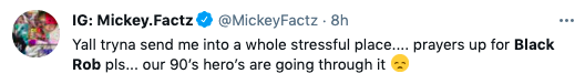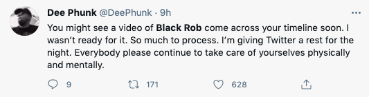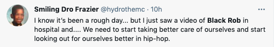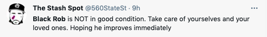 Prayers for Black Rob’s recovery and all impacted by the passing of DMX.