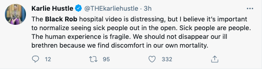 Seeing Black Rob in the hospital ? breaks my heart ? I couldn’t finish the video, bad enough we lost DMX now I have to say a prayer for Black Rob ?? I know it’s April but damn I asked for rain ? not tears pic.twitter.com/QM6HZpV39B