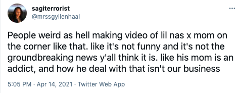 “Despite what people say @lilnasx is the greatest kid a parent can be BLESSED with. Although his mom is in a struggle with an addiction she’s STILL a QUEEN and he goes through great lengths to make sure we’re taking care of.”