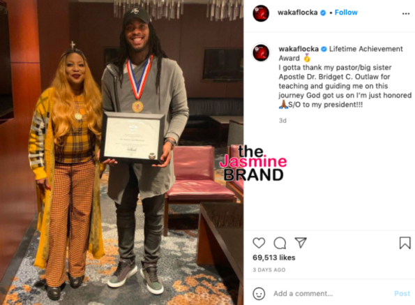 Waka Flocka celebrated the honor on Instagram, posing with Outlaw. He was all smiles as he included the caption,