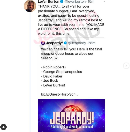 LeVar Burton To Guest Host Jeopardy! After Petition Called For Him To Get Permanent Spot