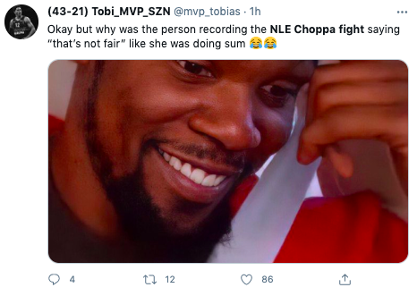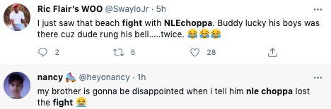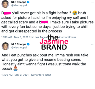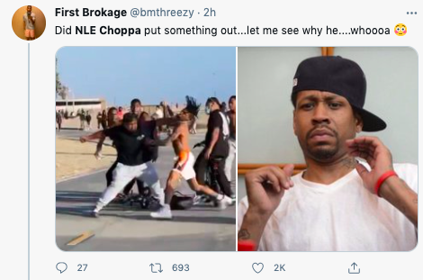 The incident occurred on Venice Beach. In the clip, NLE Choppa (born Bryson Lashun Potts) and his entourage go back and forth with two men who are on electric bikes. Things escalate after one of the guys gets off his bike and takes off his backpack as the rapper and his friends remove their shirts. Instagram user @poojabawa shared the footage on social media, causing fans to share their thoughts on Twitter.