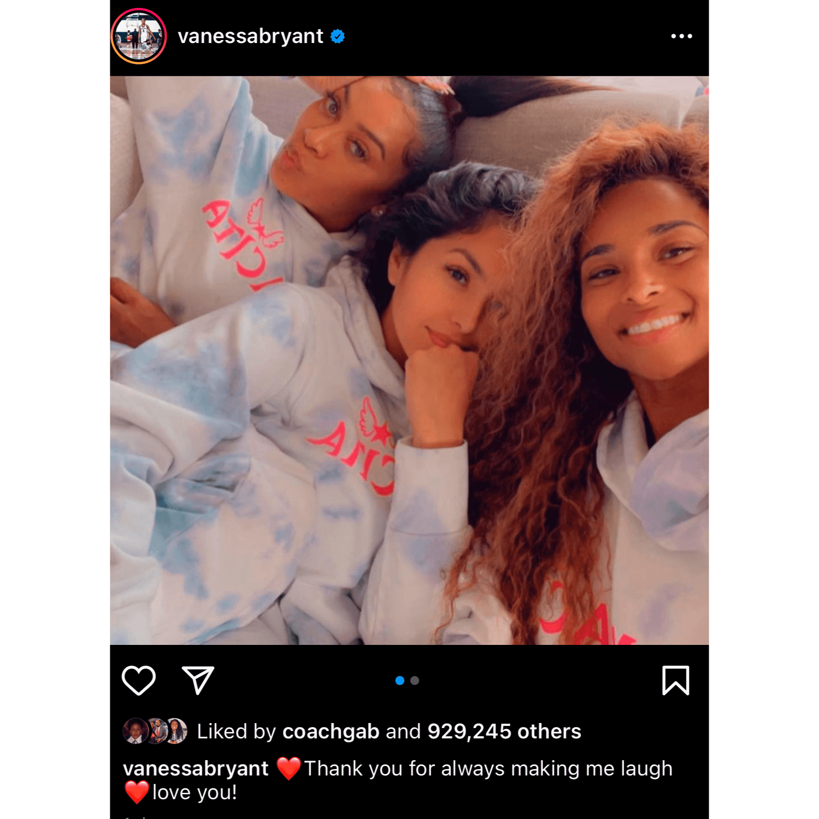 Vanessa Bryant, and her eldest daughter Natalia Bryant, sported the tie-dye sweatshirts and sweatpants in black and pink, all embellished with the Mambacita logo on the front. Vanessa Bryant and her two besties, Lala Anthony and Ciara, were also seen on social media sporting the collection.