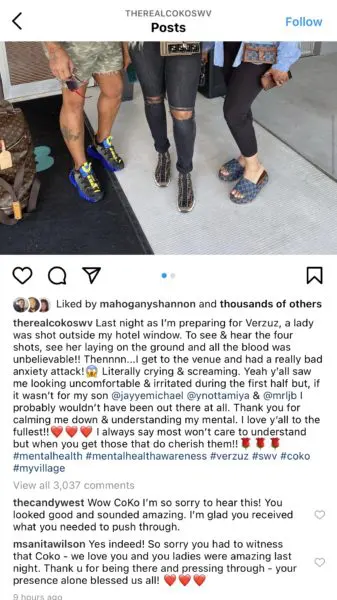 While the Verzuz battle between SWV and Xsape was a hit, some fans were questioning Coko Clemons’ attitude. During the first part of Saturday’s (May 8) Verzuz, some viewers felt Coko appeared irritated. Cocko took to social media on Sunday (May 9) to explain that a terrible incident took place prior to the event. She shared that a woman was shot outside of her hotel last night as she was preparing to take the stage and perform with her group, SWV. Clemons wrote,