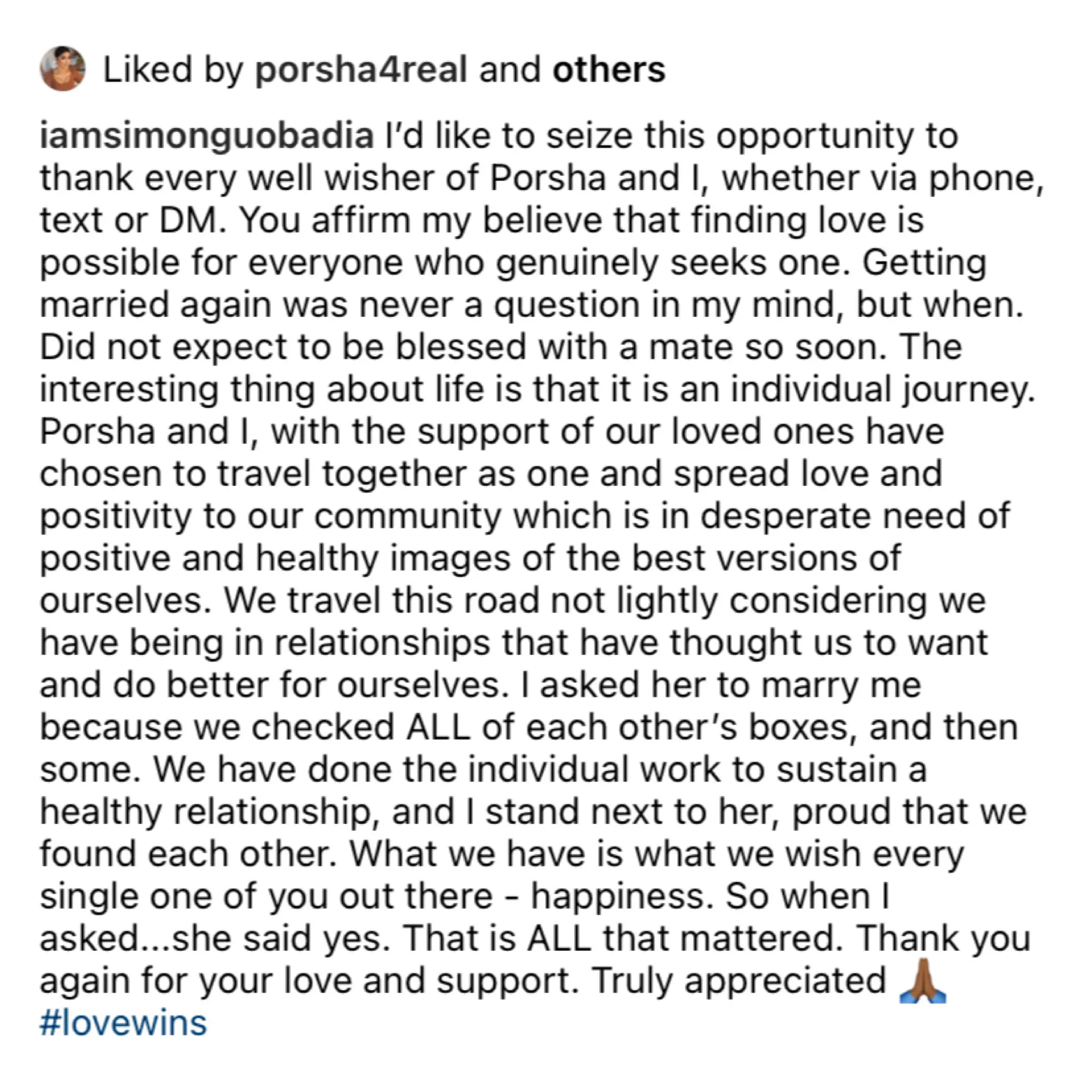 Congrats to Simon and Porsha!