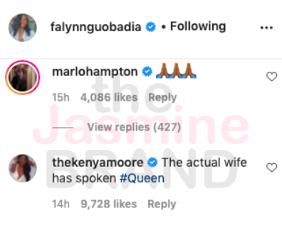 She received support from her fellow RHOA stars Marlo Hampton and Kenya Moore, who wrote: