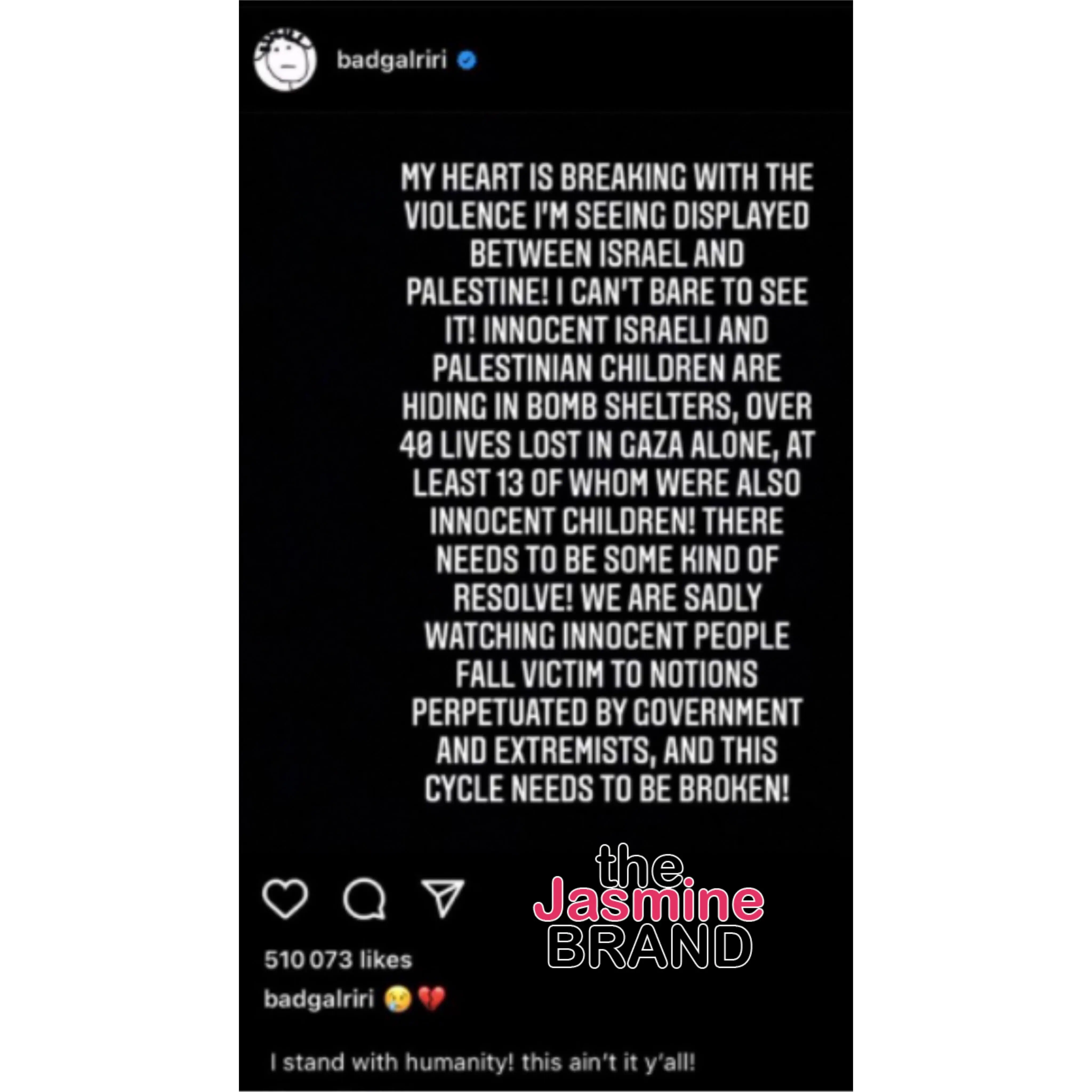 Songstress and Fenty Beauty creator Rihanna is under scrutiny for a post she made to social media. The post addressed her sentiments regarding the conflict between Israel and Palestine. The post’s caption reads:
