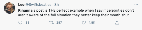 Fans have taken to social media to express their extreme disappointment in Rihanna’s post, many saying she took an “All Lives Matter” approach. Take a look: