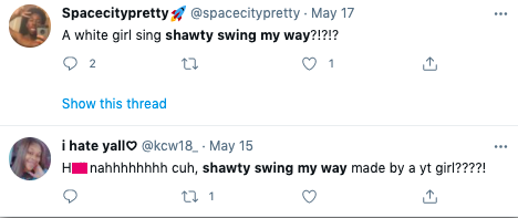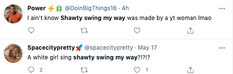 Wait, shawty swing my way was sung by a yt woman?!?! pic.twitter.com/tVaWOjxSQW