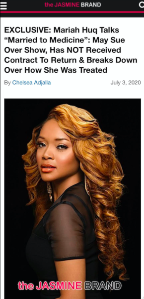 Mariah Huq first opened up about possibly suing Bravo in an exclusive interview with theJasmineBRAND last July. At the time, she was waiting to receive a contract for Married To Medicine’s current eighth season.