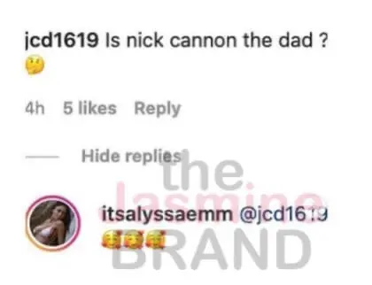 When asked in her comment section if Nick Cannon is the father, she responded with smiling Emojis.