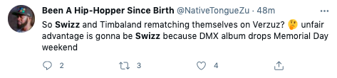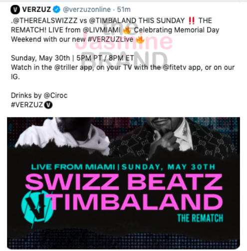 The rematch is Swizz and Timbaland! I wanted Teddy Riley and Babyface! pic.twitter.com/2lEErGrXTl