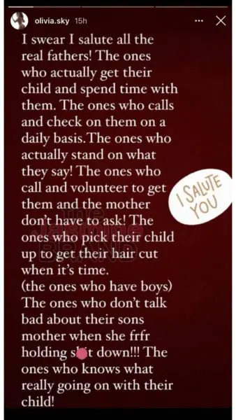 In a series of now-deleted Instagram stories, Olivia Sky went off on her baby daddy. Initially, she called him out for allegedly claiming she only wanted fame, writing: