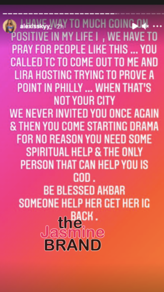 Alexis Skyy took to her IG stories as well to share her take on what happened.