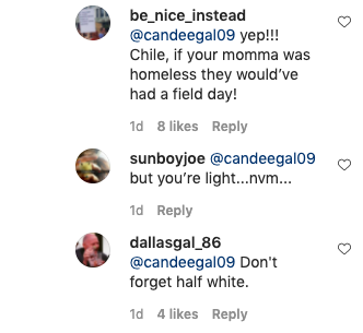 “Because she’s light skinned. There. It was said. I said it. Now, let’s see how fast it gets around.”