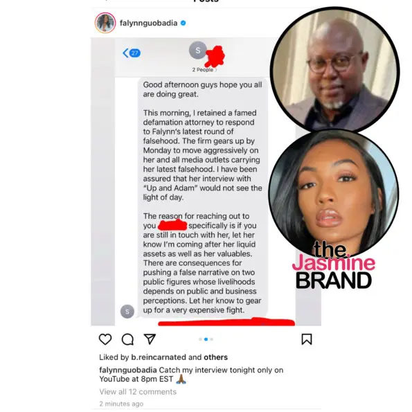 Falynn also posted what appears to be an alleged text message from Simon. The message appears to have been sent to Falynn’s rep. In the message, he notes that he has obtained a ‘famed defamation attorney’ and accuses Falynn of pushing a ‘false narrative’. The message also threatens to go after her ‘liquid assets as well as her valuables.’ Based on the message, he didn’t believe that her upcoming interview would ever be released. See the message below.