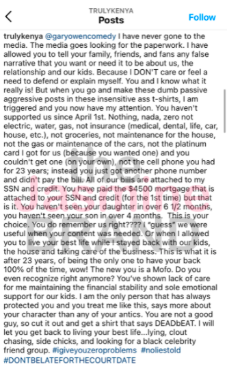 He then pointed out that they have adult children as he responded to Kenya Duke’s claims that he’s a “deadbeat dad”, stating,