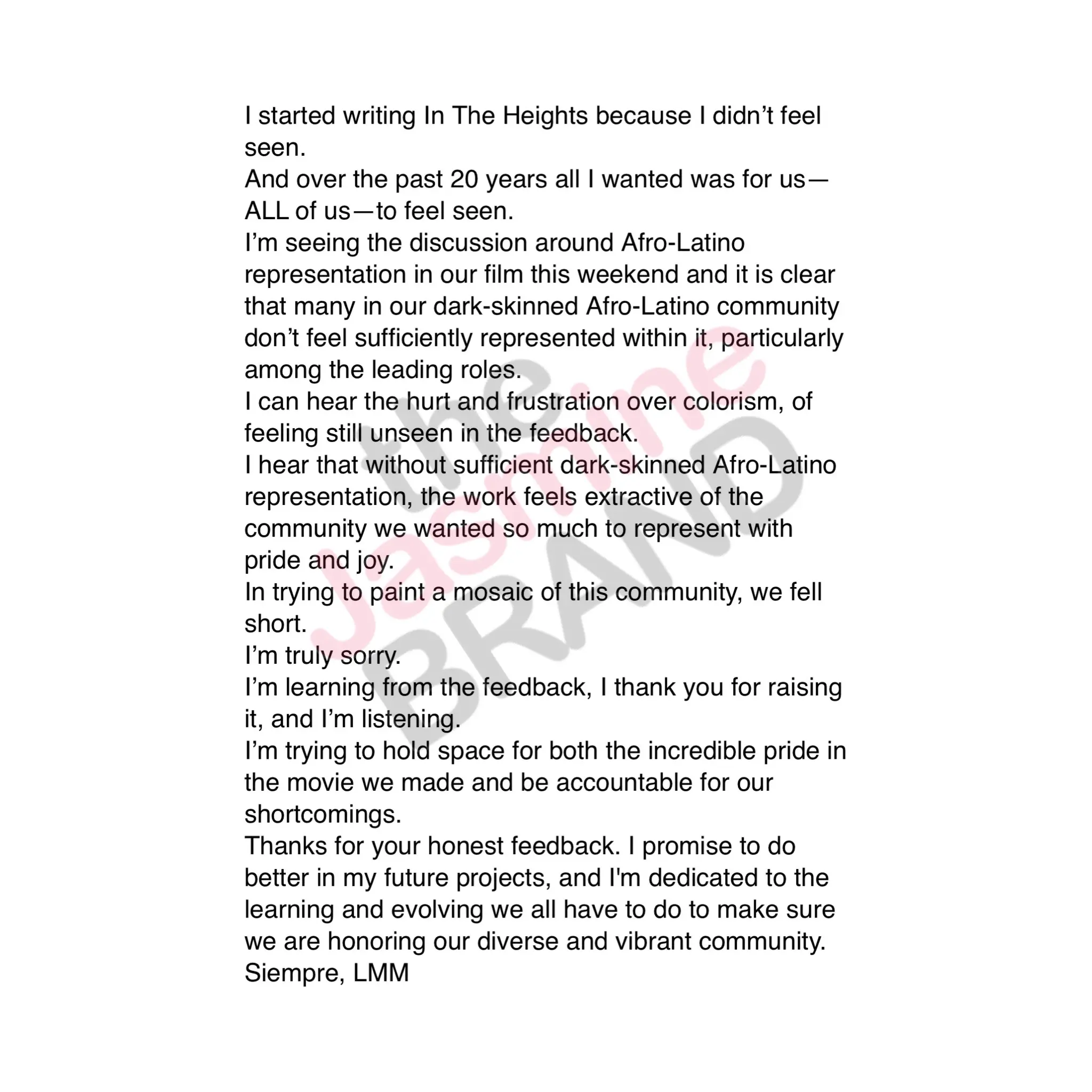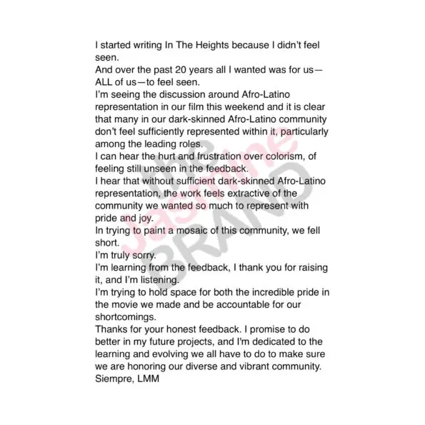 “I hear that without sufficient dark-skinned Afro-Latino representation, the work feels extractive of the community we wanted so much to represent with pride and job. I’m learning from the feedback, I thank you for raising it, and I’m listening.”